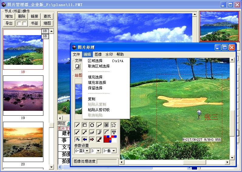 2.可根据需要自主编制目录树节点,通过设置目录树节点分类管理照片或文件(增加的节点与所见照片或文件关联);可通过目录树节点或照片的局部标识信息链接其它PMT格式文件、其它电子文件格式文件或文件夹;